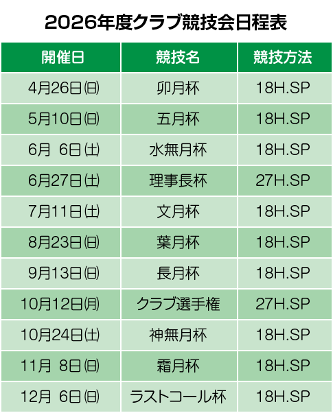2026年のクラブ競技会日程が決まりました!